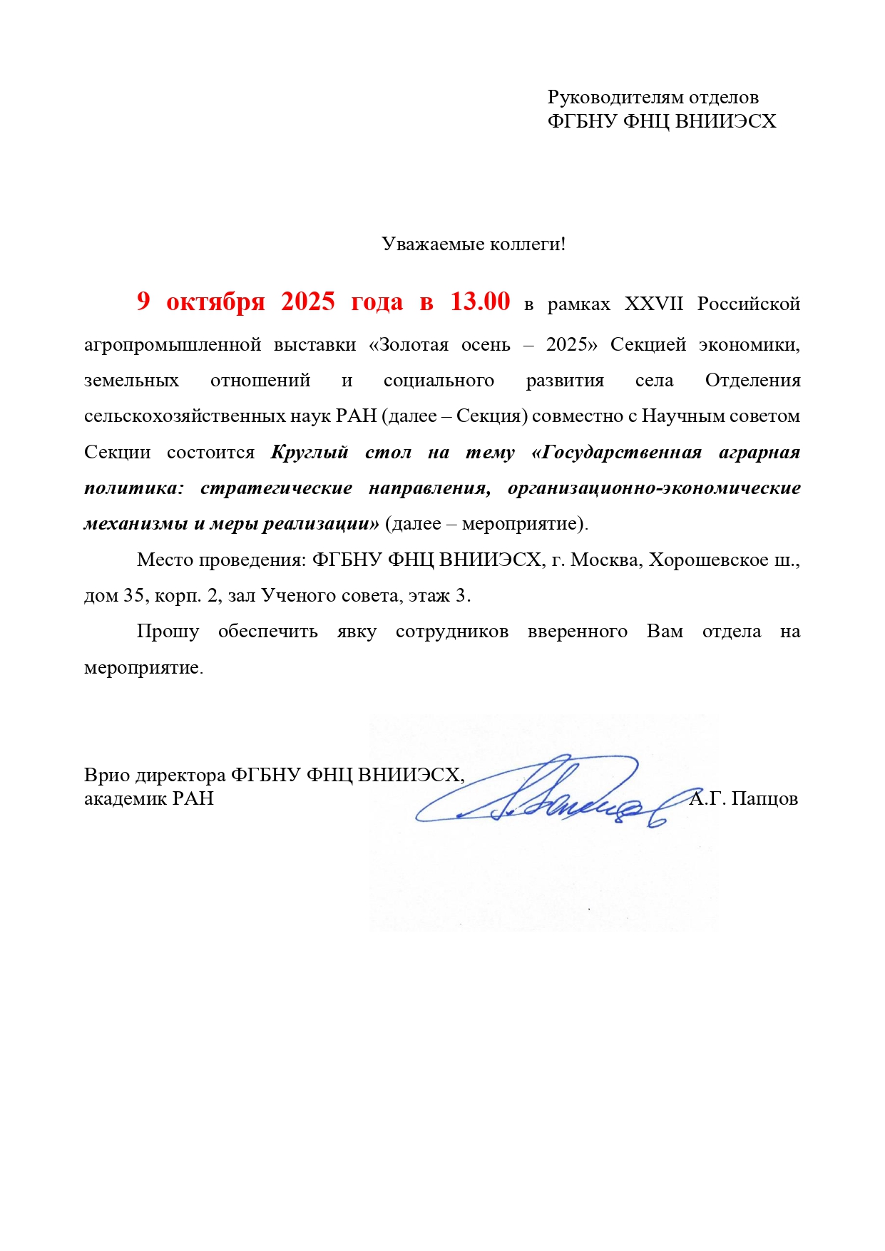 Конференции, семинарыДоклады, выступленияCOVID-19Минобрнауки разработало меры по повышению эффективности управления наукойМинсельхоз ожидает стабильного развития АПК в 2021 годуНа заседании комиссии Госсовета обсудили итоги и перспективы реализации федпроекта «Экспорт продукции АПК»Международная научно-практическая конференция «Экономика российского села: вчера, сегодня завтра»Парламентские слушания26 ноября 2021 г., в режиме онлайн, контрольное управление Президента Российской Федерации провело совещание по вопросу исполнения перечня поручений Президента Российской Федерации .Прогноз рекордных показателейРекорд по экспорту продукции АПКМишустин утвердил выделение еще 9,5 млрд рублей на льготные кредиты аграриямПлановая аттестация научных работниковКонференция 21-22 декабряЗаседание Совета молодых ученых ФГБНУ ФНЦ ВНИИЭСХДиссертационный советМеждународная научно-практическая конференцияНаучная сессия ФГБНУ ФНЦ ВНИИЭСХЗаседание диссертационного советаЗаседание диссертационного советаСайт стипендиата РоссииУважаемые коллеги! Поздравляем вас с профессиональным праздником — Днем российской науки!«Ломоносовские чтения — 2022»«Промышленность и сельское хозяйство: как усилить взаимную поддержку?»Онлайн семинарПриоритеты аграрной политики в современных условияхС Днём победы!Экзамен по дисциплине «История и философия науки»С праздником!С праздником!Методологический семинарРоссия не намерена терять позиции на мировом рынке пшеницыКруглый стол «Социальные проблемы кадастровой реформы»Обозначены ключевые направления работы по развитию селекции и семеноводстваВстреча академика И.Г. Ушачева с молодыми сотрудниками ФГБНУ ФНЦ ВНИИЭСХНаучная конференция, посвященная 130-летию со дня рождения Н.Д. Кондратьева, состоялась в Доме экономистаС Международным женским днем!!!30 новых лабораторий сельхознаук планируют создать в России в 2023 годуСостоялась отчетно-выборная конференция делегатов трудового коллектива ФГБНУ ФНЦ ВНИИЭСХТемпы экспорта зерна из России опережают показатели рекордного сезона-2021/22Московский экономический форумГосударственная награда«Продовольственная безопасность – важнейшая составляющая национальной безопасности России»Деловая встреча по вопросам организации селекционно-племенной работыРоссия и Белоруссия наращивают товарооборот в сфере АПКПо итогам первого полугодия в России на 29% выросло производство ракообразных и продукции из моллюсковУполномоченные банки временно приостанавливают выдачу сельской ипотекиСегодня день рождения у доктора экономических наук, профессора, академика РАН Алтухова Анатолия Ивановича!Сегодня день рождения у специалиста по охране труда Семкина Виктора Александровича!Формирование экспертной комиссии диссертационного совета 24.1.250.01Заседание круглого столаСборник научных статей «Экономика аграрного сектора в России и за рубежом»Участие ФГБНУ ФНЦ ВНИИЭСХ в «круглом столе» в Государственной ДумеVIII Всероссийское экономическое собрание, посвященное профессиональному празднику «День экономиста»Искусственный интеллект и тенденции его развития в землепользованииПарламентский круглый столНаучная сессия ФГБНУ ФНЦ ВНИИЭСХ«Семья РССМ: история в лицах»Итоги научной сессии ФГБНУ ФНЦ ВНИИЭСХПарламентские слушания26 декабря состоялось зас
