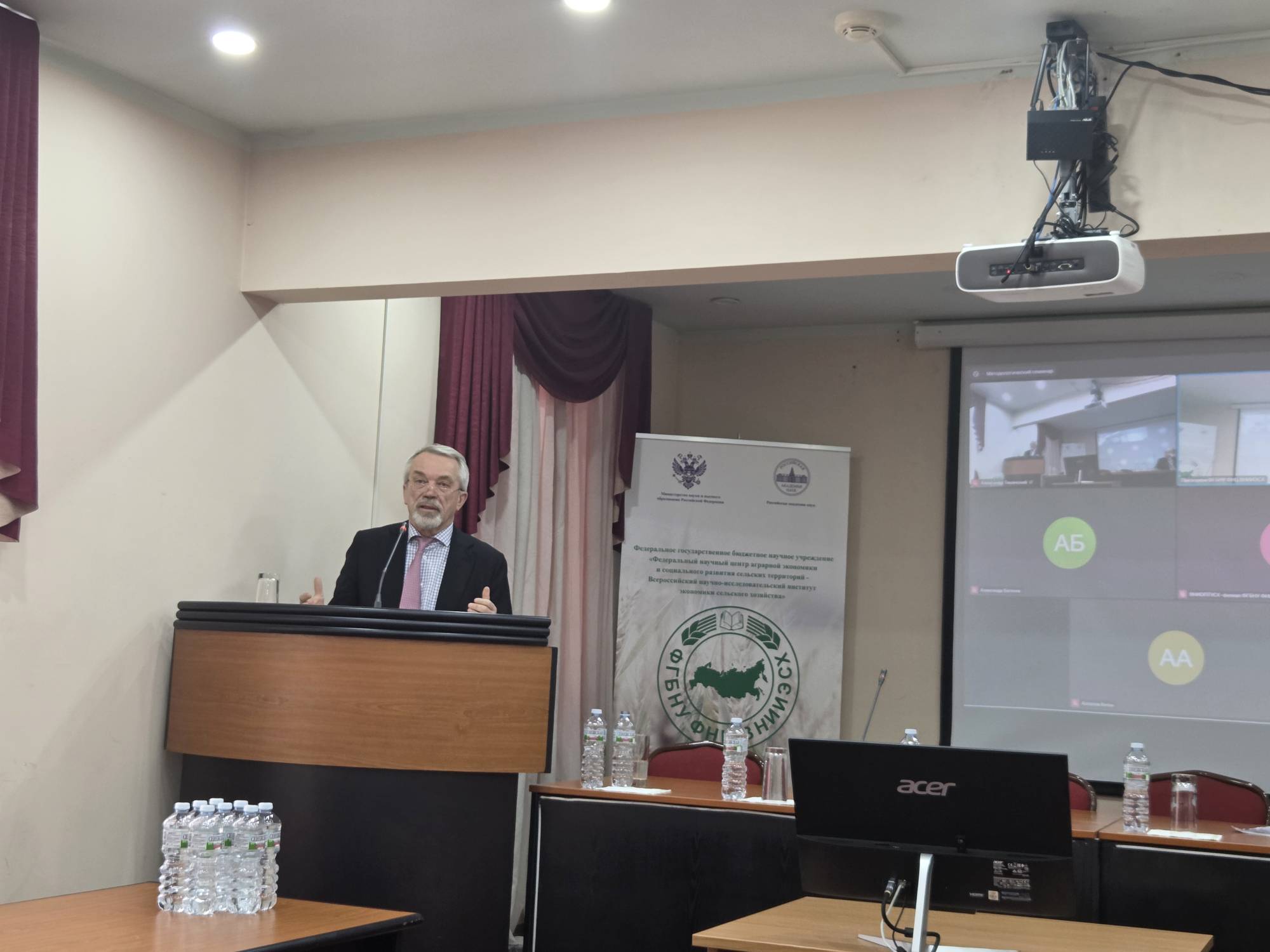 6 февраля 2026 года в зале заседаний Ученого совета ФГБНУ ФНЦ ВНИИЭСХ состоялся Методологический семинар. Открыл мероприятие научный руководитель ФГБНУ ФНЦ ВНИИЭСХ, академик РАН И.Г.Ушачев. С основным докладом на тему: «Как осуществить научно-технологический прорыв в РФ» выступил член-корреспондент РАН Савченко Евгений Степанович.