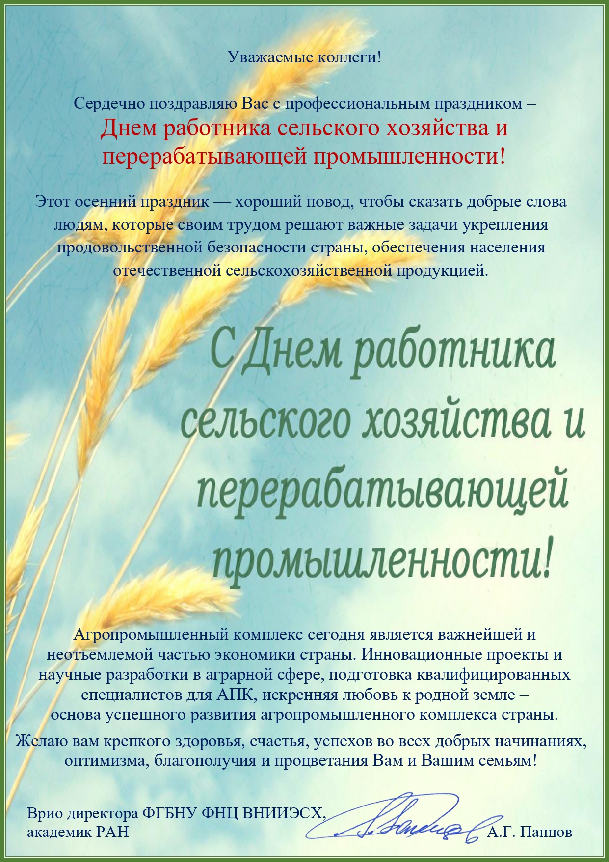 С Днем работника сельского хозяйства и перерабатывающей промышленности!